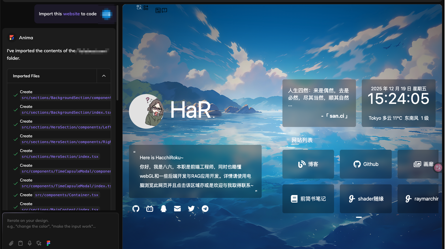 一个基本的demo就完成了,可以基于此基础进行更多的功能开发,Anima的功能其实说白了主要是省下1:1复刻figma的时间,如果是本文章的网页那种形式的话,UI上会有一些不太一样的地方,但是如果是figma的设计稿,则可以直接省略掉大量的重复的冗余的CSS设计,将开发的重心集中到业务逻辑上来,或者。。让你从前端做到全栈,研究研究后端!