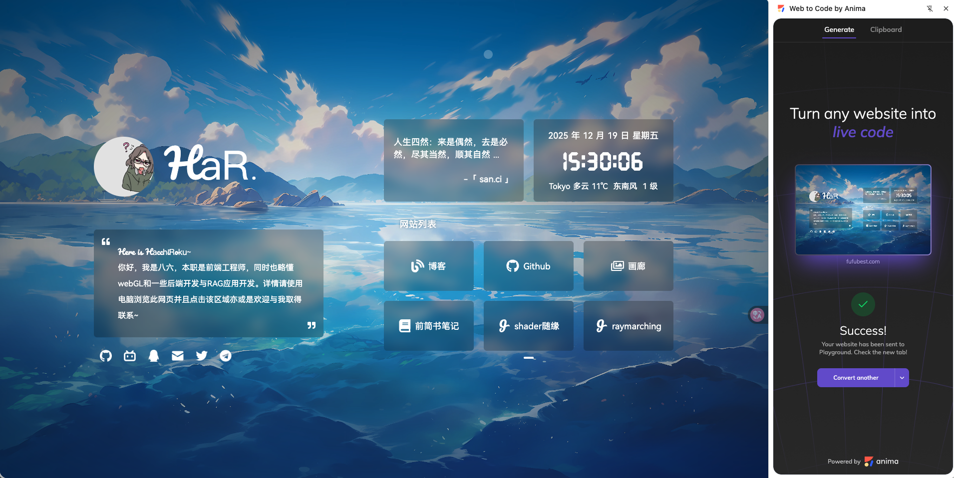 安装好上面的Chrome extension之后,因为我没有付费,所以不能演示figma(其实最好的使用方法就是figma),我们来找一个网页进行测试,比如我的个人站点: