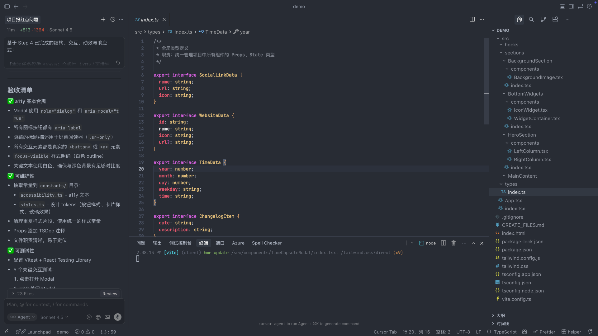 - 关键交互有测试兜底完事儿了之后呢:我们再交给Cursor进行代码的微调以及解决一些微小型的bug就可以了,或者其实到了这个份上也可以完全交给经验丰富的各位开发自己来解决式样问题啦~