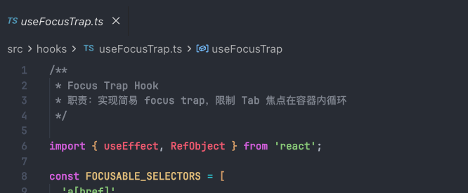 - Tab 键不会把焦点跑到 Modal 外(实现简易 focus trap,不引入第三方库)